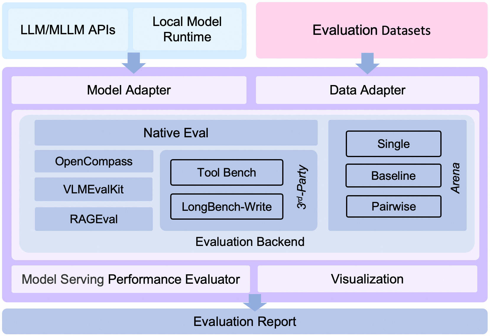 Below is the overall architecture diagram of EvalScope: